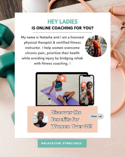 Through Black Star PT Wellness, my online fitness programs focus on strength training, joint health, and injury prevention, particularly for busy women over 30. Whether you’re new to strength training or seeking a structured system to support your fitness journey, my programs provide a safe, sustainable path to achieving your goals.