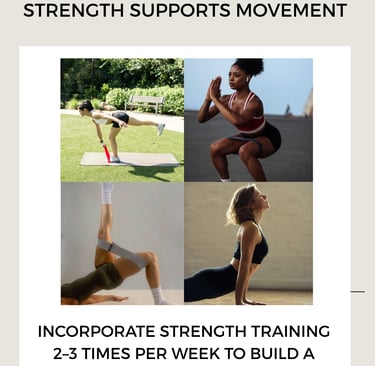 Through our online health and fitness coaching, we empower busy women to prioritize their health while managing pain, improving mobility, and preventing injury. These programs combine strength training, joint health education, nutrition guidance, and healthy habit coaching to support sustainable, whole-body wellness.