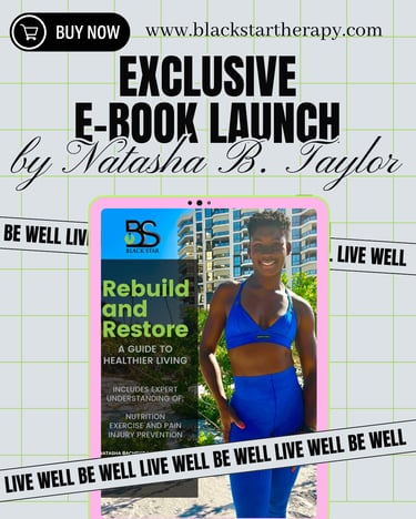 Black Star Physical Therapy and Wellness, founded by Natasha B. Taylor, PT, MS, OCS, is built on the belief that every person deserves access to movement, strength, and holistic health. With over twenty years of orthopedic physical therapy experience, Natasha bridges physical therapy, fitness, and lifestyle medicine to help people move with confidence and live pain-free.